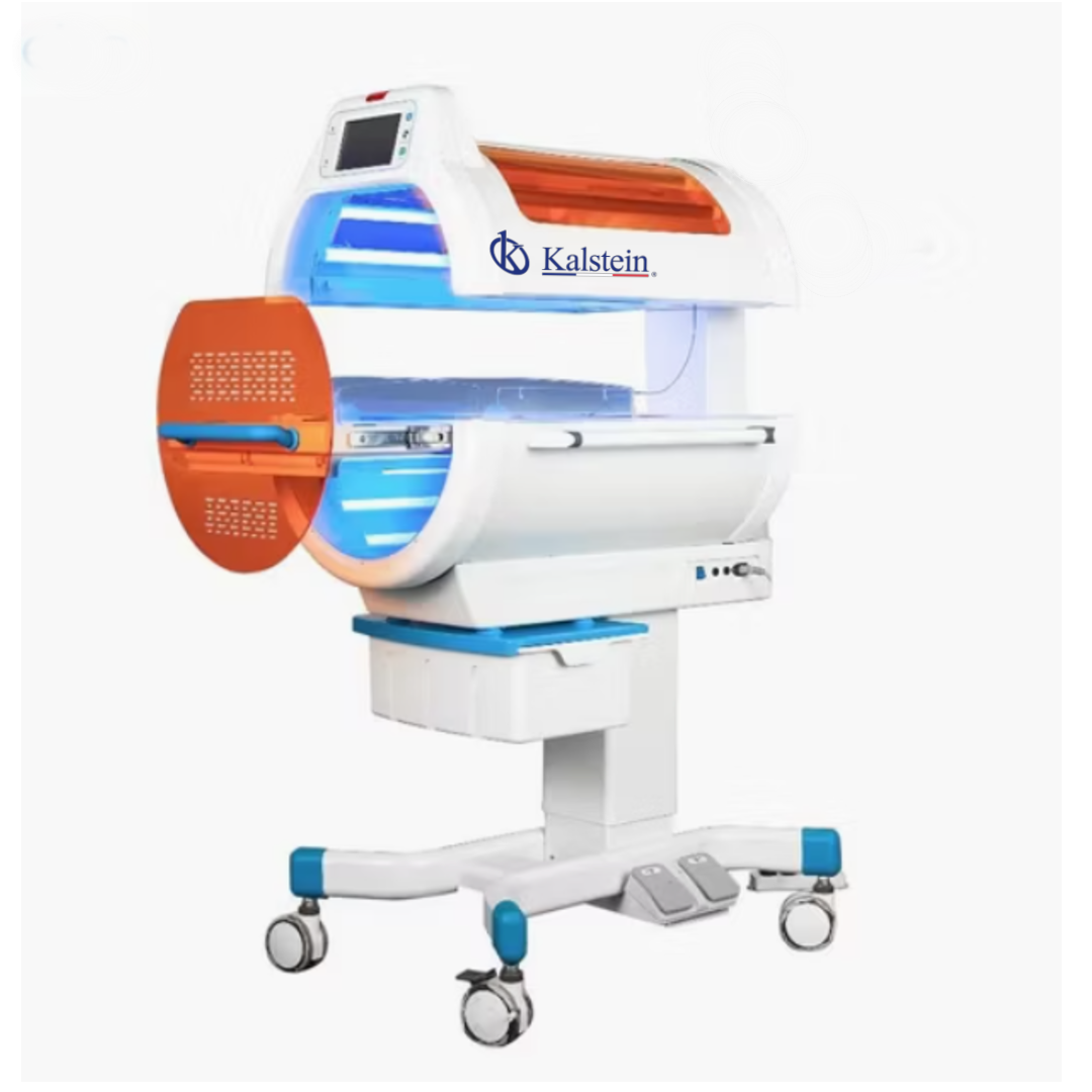 Este equipo destaca por su diseño de irradiación de 360° sin ángulos muertos, lo que permite una cobertura uniforme y extensa sobre el cuerpo del bebé para maximizar la eficacia del tratamiento. Incorpora una fuente de luz LED (Diodo Emisor de Luz) con una intensidad ajustable en tres niveles (33%, 66% y 100%) y una longitud de onda efectiva de 400nm a 550nm.